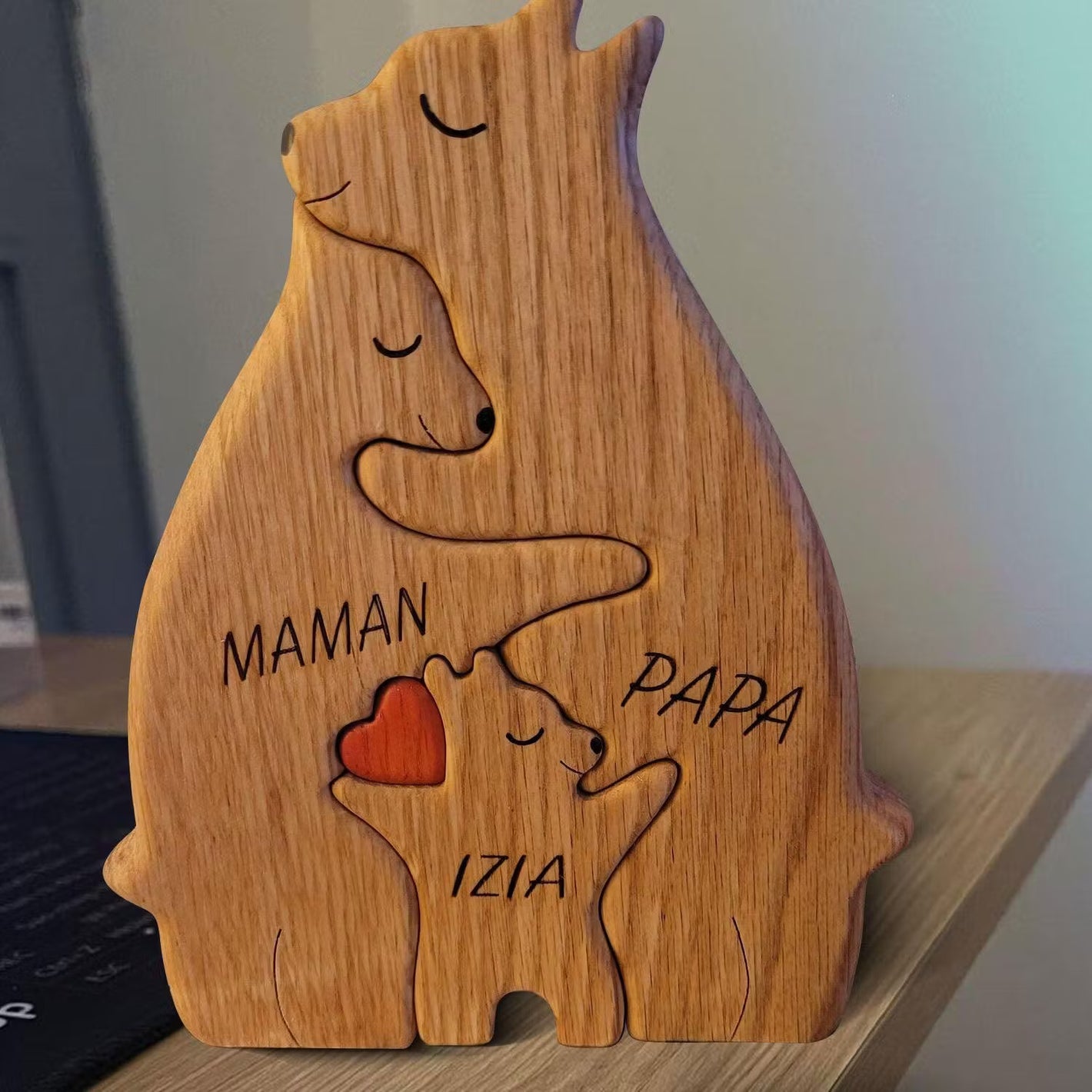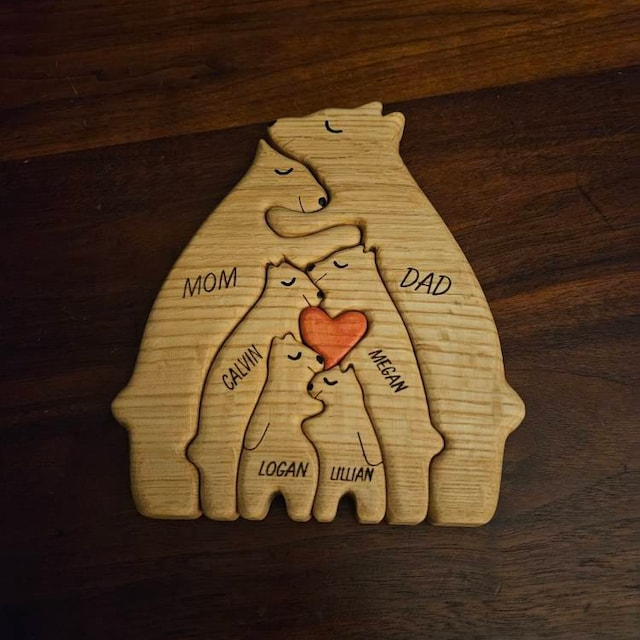 FamilyBears™ is different. It's a handcrafted wooden puzzle where each bear has a name - the names of the people you love. Display it in your home or give it as a gift that people actually keep and treasure.