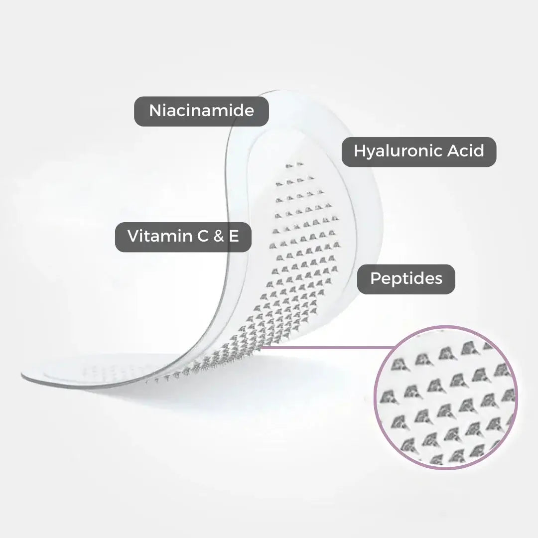 Τα επιθέματα Yuvy χρησιμοποιούν 1800 μικροβελόνες κατασκευασμένες εξ ολοκλήρου από ενεργά συστατικά όπως νιασιναμίδη, υαλουρονικό οξύ και πεπτίδια.